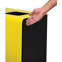 Identification du type de tri (plaques de couleur avec ouverture calibrée, texte de la couleur du tri en français, braille et autre langue disponible sur devis).