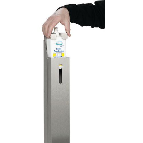 | Intitulé du produit | Borne gel et savon, Type de fixation: À sceller, Commande distributeur: Poussoir, Coloris: Gris |