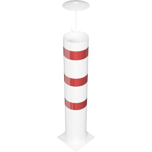 La borne tube à cheviller capuchon d'ancrage béton - Blanc/Rouge de Schake est idéale pour les environnements où la visibilité et la sécurité sont essentielles. Son design robuste et ses bandes réfléchissantes assurent une protection efficace.