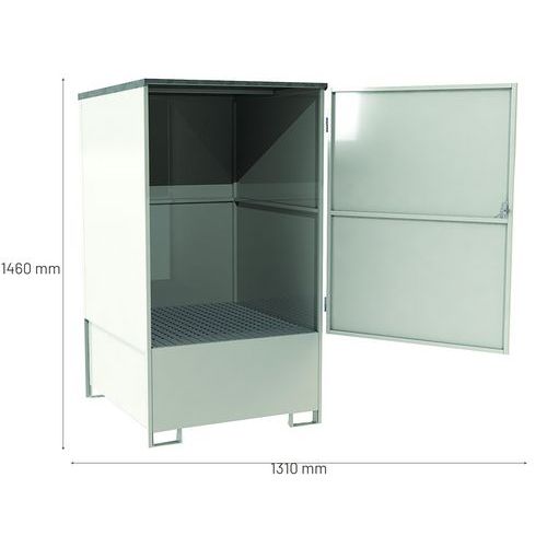 | Intitulé du produit | Box de rétention métallique 1 GRV, Capacité de rétention: 1000 L, Coloris: Blanc, Caillebotis: oui |