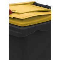 - Sécurisé grâce au système de verrouillage automatique empêchant le couvercle de s’ouvrir lorsque le conteneur est incliné.