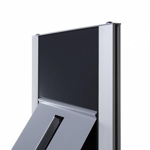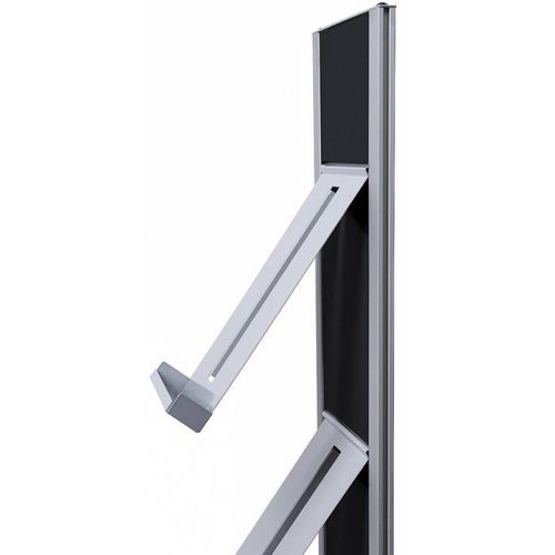 Facile à monter: 4 étagères en métal ou pochettes facilement insérables en styrène transparent permettant d‘afficher la page de garde des brochures A4.