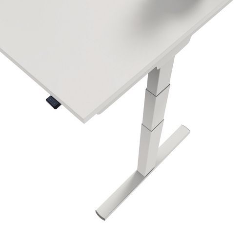 Bureau assis-debout ergonomique avec piètement en forme de T. Système de réglage électrique avec touche sans mémoire. Interrupteur électrique installé sur le coté droit. Montez ou baissez votre bureau et adaptez votre posture dans la journée