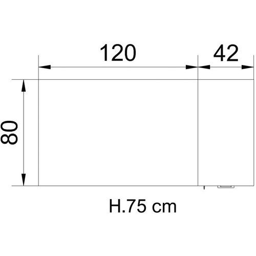 Plan de travail en aggloméré en ép. 25 mm, revêtu sur deux cotés avec papier décoratif impégné de résine anti-rayures, antireflet et lavable. Chants droits en ABS en 2 mm antichoc sur le 4 cotés assortis au plan. Dénsité panneau: 670/730 kg/m3. Pieds et poutre en tôle d’acier verni avec poudre époxy. Fabriqué en UE