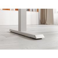 Bureau assis-debout série XMST - 200x100 cm. État de livraison démonté avec montage facile. Capacité de charge de 70 kg dynamique et 90 kg statique. Piètement en T argenté avec interrupteur à bouton.