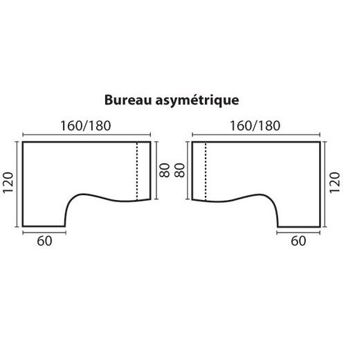 Bureau asymétrique Quatuor pieds panneaux, Type de piétement: Panneau, Hauteur hors tout: 72 cm Bureau asymétrique Quatuor pieds panneaux, Type de piétement: Panneau, Hauteur hors tout: 72 cm