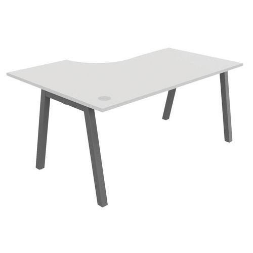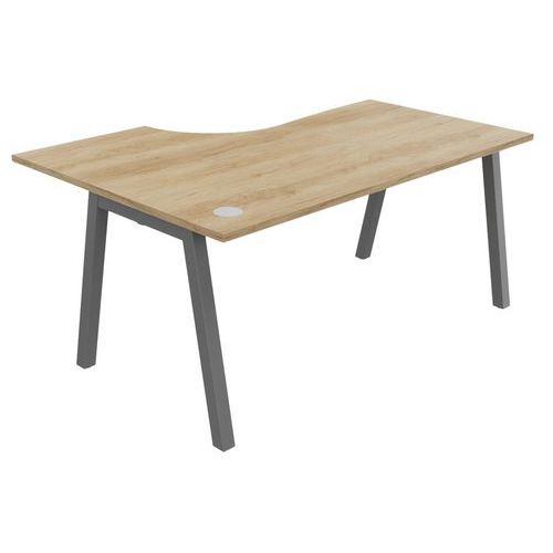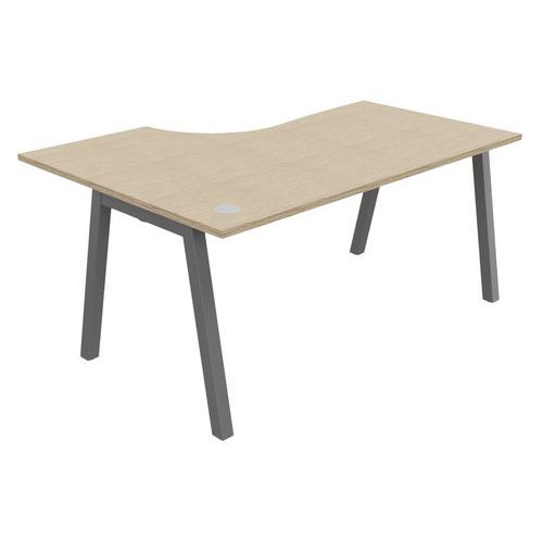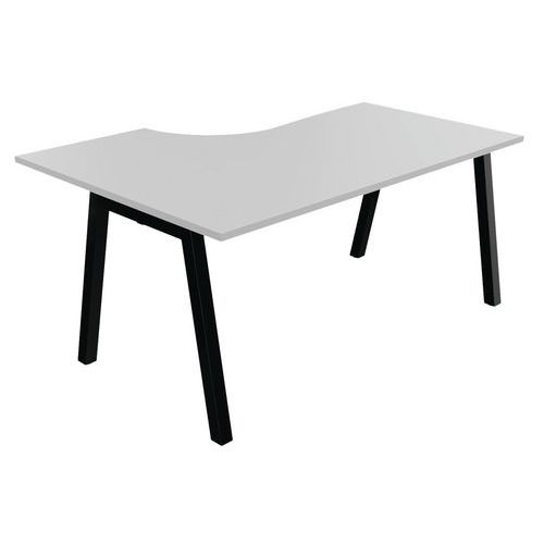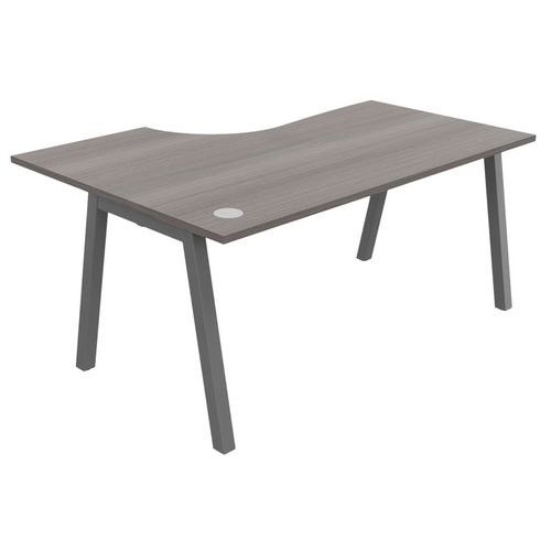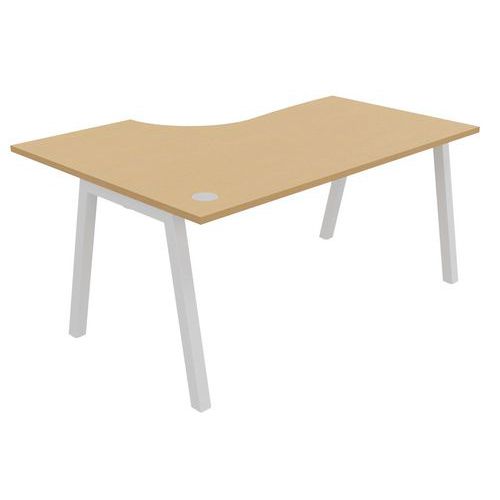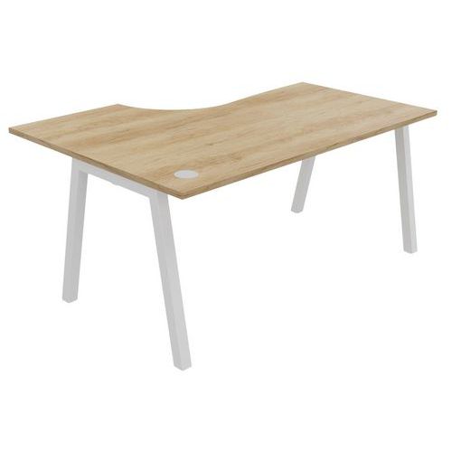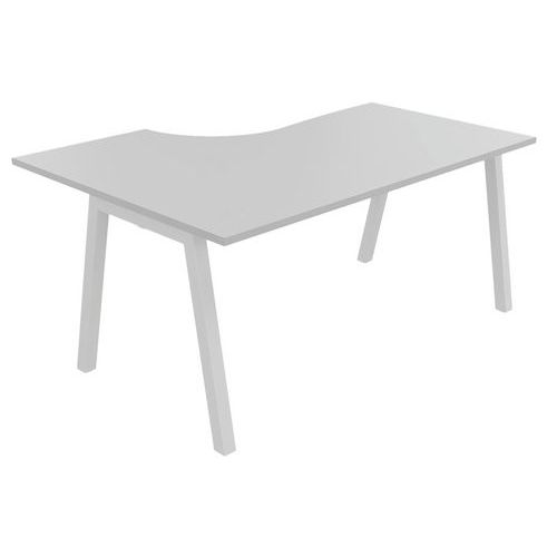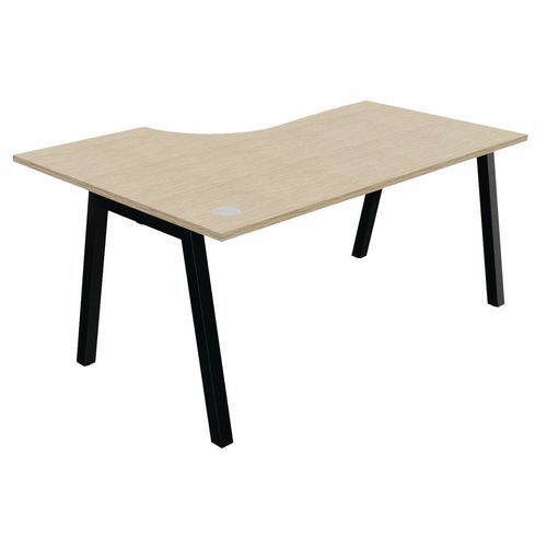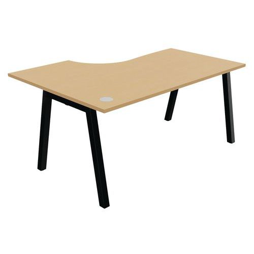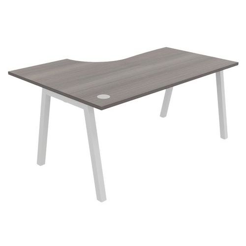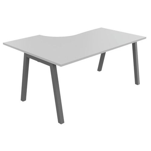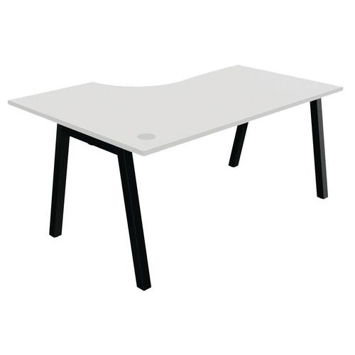 Plateau mélaminé ép. 25 mm équipé d'un obturateur passe-câble Chant ABS antichoc 2 mm Piétement métallique en arche composé de pieds carrés de section 50 x 50 mm obliques, finition époxy laqué. Vérins de stabilisation pour compenser les défauts de planéité du sol (course de réglage 10 mm)