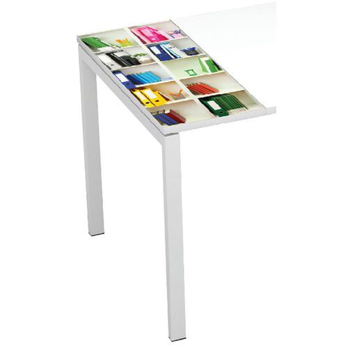 Bureau droit 140x80cm avec plateau Décor Easy Office. Structure métallique pour une parfaite rigidité. Poutres télescopiques en métal. Chants PVC épaisseur 2 mm. Pied métal section 50 x 30 mm. Revêtu peinture époxy coloris blanc. Un bureau personnalisé et vite monté.