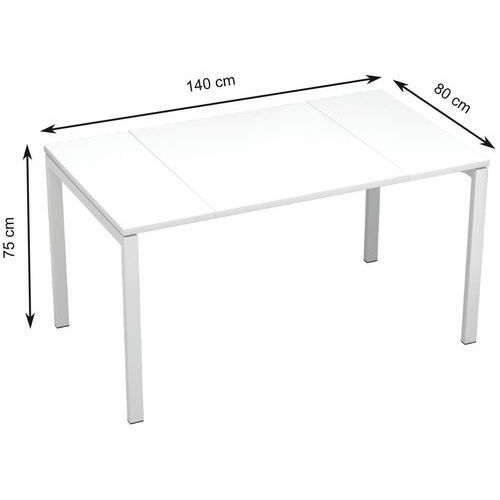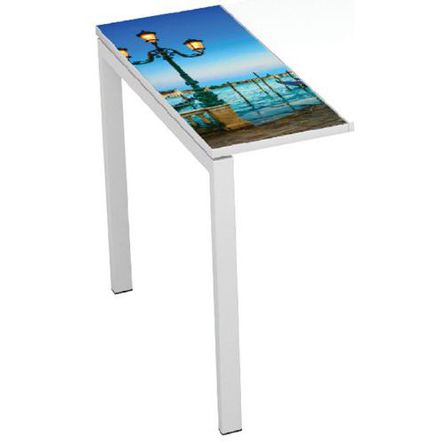 Bureau droit 140x80cm avec plateau Décor Easy Office. Structure métallique pour une parfaite rigidité. Poutres télescopiques en métal. Chants PVC épaisseur 2 mm. Pied métal section 50 x 30 mm. Revêtu peinture époxy coloris blanc. Un bureau personnalisé et vite monté.