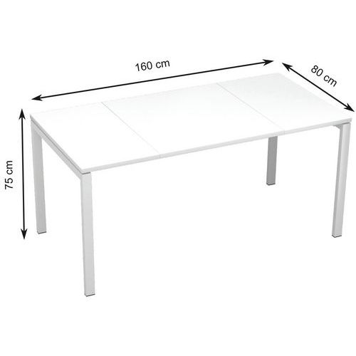 Bureau droit 160x80cm avec plateau Décor Easy Office. Structure métallique pour une parfaite rigidité. Poutres télescopiques en métal. Chants PVC épaisseur 2 mm. Pied métal section 50 x 30 mm. Revêtu peinture époxy coloris blanc. Un bureau personnalisé et vite monté.