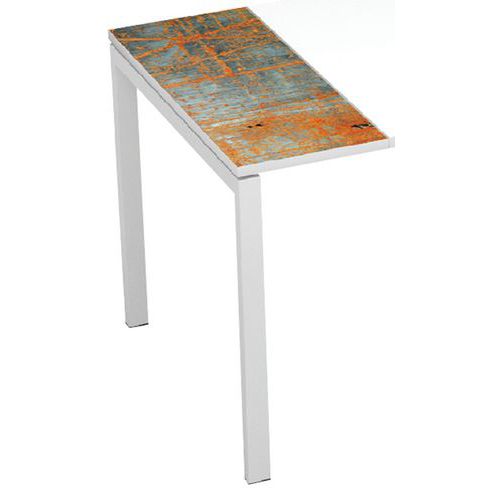 Bureau droit 160x80cm avec plateau Décor Easy Office. Structure métallique pour une parfaite rigidité. Poutres télescopiques en métal. Chants PVC épaisseur 2 mm. Pied métal section 50 x 30 mm. Revêtu peinture époxy coloris blanc. Un bureau personnalisé et vite monté.