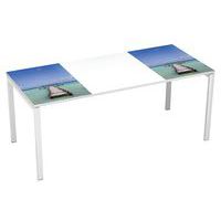 Structure métallique pour une parfaite rigidité Poutres télescopiques en métal Chants PVC épaisseur 2 mm Pied métal section 50 x 30 mm Revêtu peinture époxy coloris blanc Un bureau personnalisé et vite monté