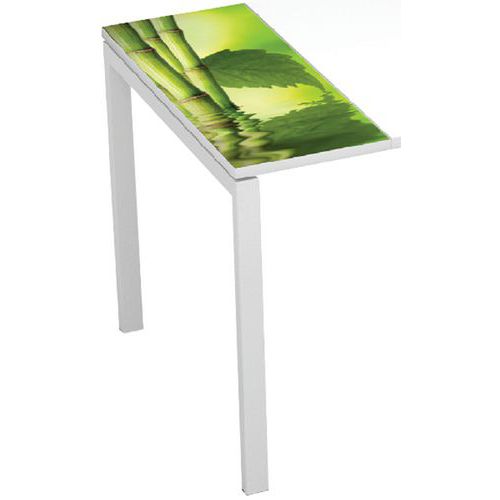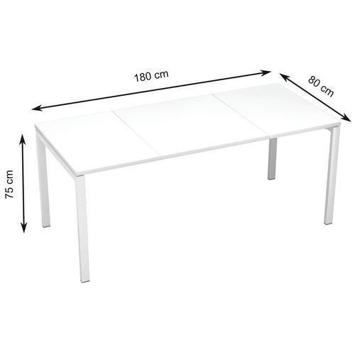 Structure métallique pour une parfaite rigidité Poutres télescopiques en métal Chants PVC épaisseur 2 mm Pied métal section 50 x 30 mm Revêtu peinture époxy coloris blanc Un bureau personnalisé et vite monté