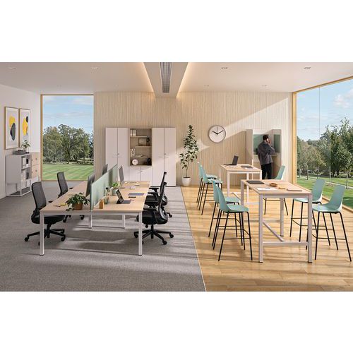Bureau droit Astro Arche structure métal avec poutre autoportante pour plus de solidité. Plateau panneau de particules bois haute densité épaisseur 25 mm, revêtu mélaminé. Chants ABS antichocs épaisseur 2 mm. Plateau équipé de 2 obturateurs Ø 80 mm pour le passage de câbles. Pieds arche métallique finition époxy coloris alu, de section 50 x 50 mm. Vérins de réglage d'aplomb. Livré prêt à monter avec notice.
