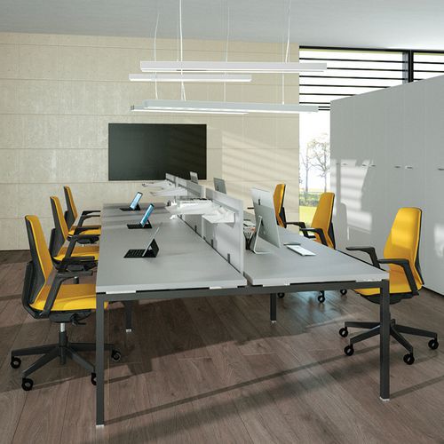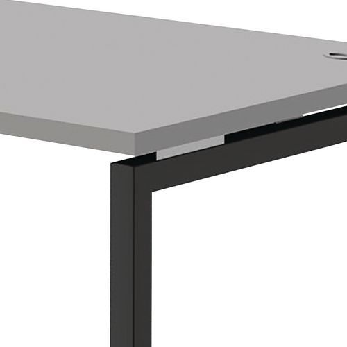 Pieds avec finition en peinture époxy protège des chocs. Plateau mélaminé et rebord en ABS antichocs garantissent une grande longévité. Passage câble prévu sous le plateau du bureau.