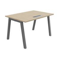 Plateau mélaminé ép. 25 mm, équipé d'un top access de finition assortie au piétement Chant ABS antichoc 2 mm Piétement métallique en arche composé de pieds carrés de section 50 x 50 mm obliques, finition époxy laqué. Vérins de stabilisation pour compenser les défauts de planéité du sol (course de réglage 10 mm)