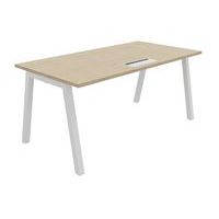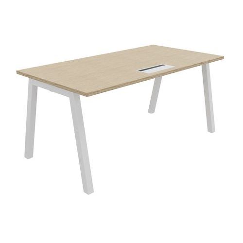 Plateau mélaminé ép. 25 mm, équipé d'un top access de finition assortie au piétement Chant ABS antichoc 2 mm Piétement métallique en arche composé de pieds carrés de section 50 x 50 mm obliques, finition époxy laqué. Vérins de stabilisation pour compenser les défauts de planéité du sol (course de réglage 10 mm)