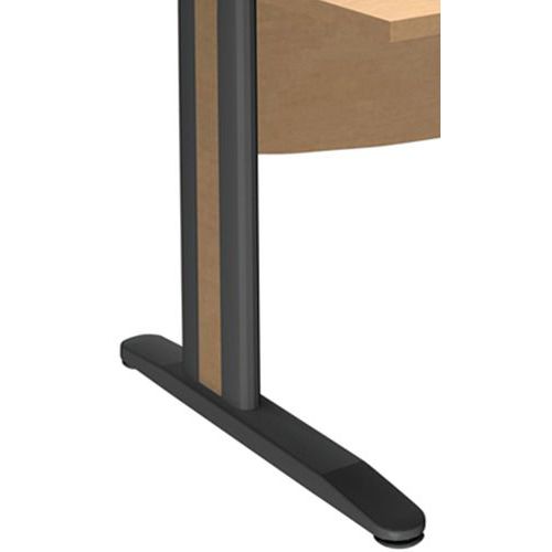 Bureau droit Quatuor avec pieds métal Plateau épaisseur 25 mm, équipé d'un obturateur pour le passage de câbles. Pieds métal forme L avec passage de câbles sous baguettes bois amovibles. Voile de fond aggloméré épaisseur 16 mm, de forme courbe, pour le passage des câbles électriques. Pieds équipés de vérins de réglage d'aplomb. Prêt à monter avec notice.