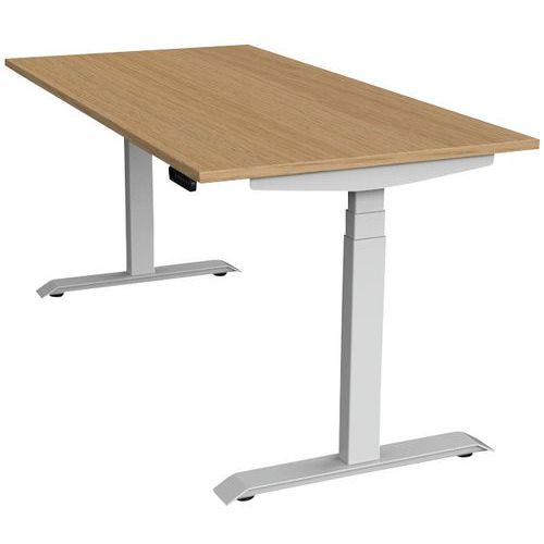 Bureau droit pour votre espace de travail. Pieds en T. Réglable en hauteur avec mécanisme électrique. Plateau mélaminé.