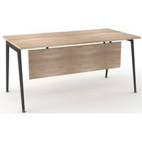 Plan de travail en aggloméré en ép. 25 mm, revêtu sur deux cotés avec papier décoratif impégné de résine anti-rayures, antireflet et lavable. Chants droits en ABS en 2 mm antichoc sur le 4 cotés assortis au plan. Dénsité panneau: 670/730 kg/m3. Pieds et poutre en tôle d’acier verni avec poudre époxy. Fabriqué en UE