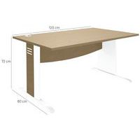 Bureau droit Quatuor pieds L bois Plateau panneau de particules épaisseur 25 mm, hauteur 72 cm. Pieds L socle bois massif avec sérigraphie et vérins de réglage. Voile de fond épaisseur 16 mm de forme courbe pour permettre le passage de câbles. Plateau hauteur 72 cm en particules épaisseur 25 mm revêtu décor mélaminé. Chants antichocs. Livré prêt à monter avec notice. A compléter au choix d'un plateau d'extension avec pieds, d'un caisson hauteur bureau ou d'une extension goutte d'eau.