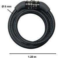 Câble antivol à combinaison fixe, Diamètre Ø: 8 mm, Longueurs: 1200 mm, Poids du produit: 0.16 kg