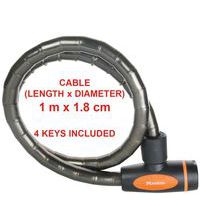 Intitulé du produit | Câble antivol articulé vélo à clé, Ø: 18 mm, Longueur: 1000 mm, Nb de clés: 4, Poids du produit: 0.648 kg |