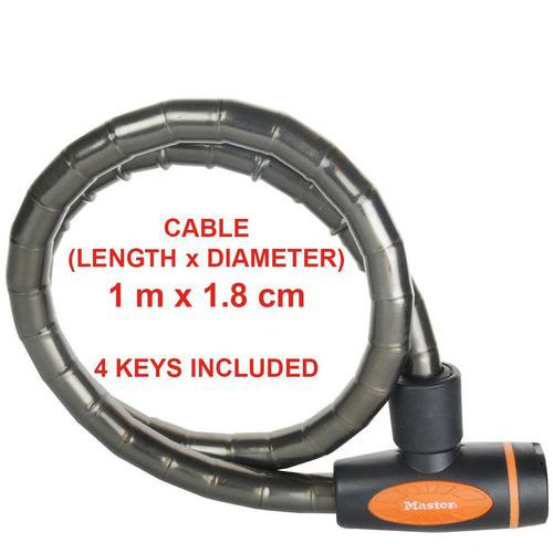 | Intitulé du produit | Câble antivol articulé vélo à clé, Ø: 18 mm, Longueur: 1000 mm, Nb de clés: 4, Poids du produit: 0.648 kg |
