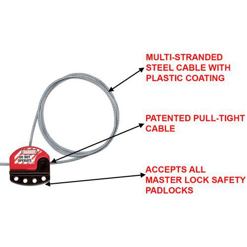 Câble de consignation ajustable Master Lock qui convient parfaitement aux verrouillages de groupe et multipoints.