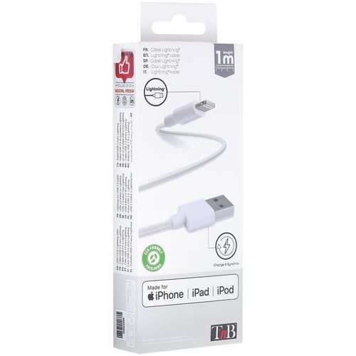 Câble USB / Lightning, Coloris: Blanc, Emballage recyclable: Oui - 100 %, Longueur: 1 m