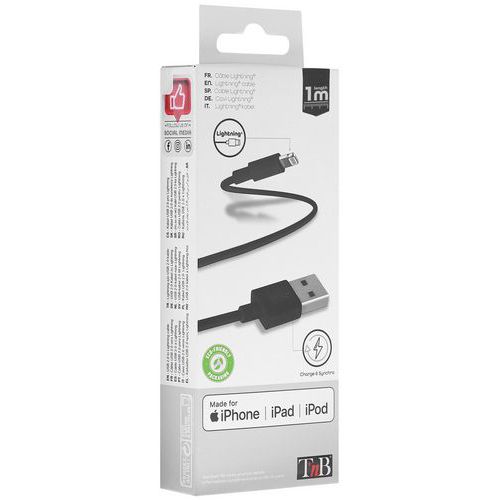 Câble USB / Lightning, Coloris: Noir, Emballage recyclable: Oui - 100 %, Longueur: 1 m