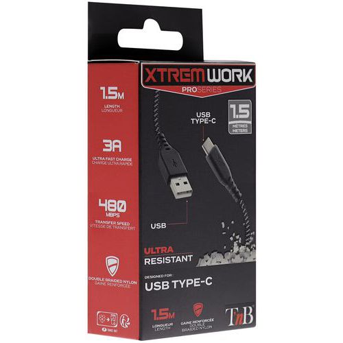 | Intitulé du produit | Câble USB / USB-C XTREMWORK, Coloris: Noir/gris, Emballage recyclable: Oui - 100 %, Longueur: 1.50 m |