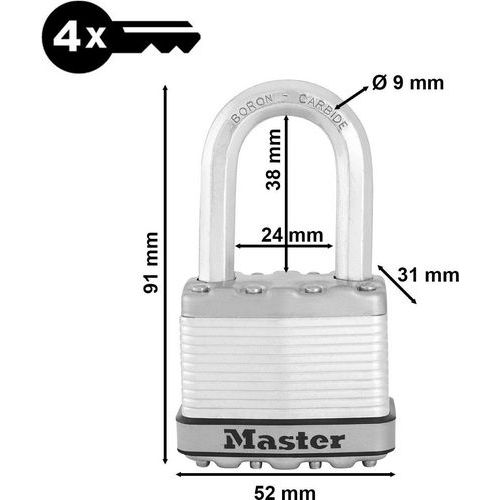 | Intitulé du produit | Cadenas à clé en acier Excell M5EURT, Longueurs: 44 mm, Nb de clés: 4, Anse Ø: 9 mm |