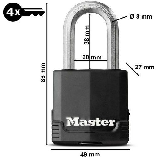 | Intitulé du produit | Cadenas à clé en acier laminé Excell M115EURTRILF, Longueurs: 46 mm, Nb de clés: 4, Anse Ø: 8 mm |