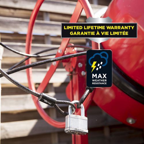 Protection Dual-Armor™: cadenas avec corps en acier laminé et finition en laiton résistant aux intempéries, qui protège contre la neige, la pluie, la poussière, la boue, l'encrassement et le sel..