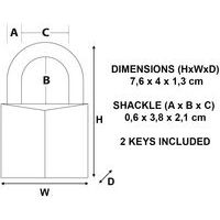 Intitulé du produit | Cadenas à clé en laiton avec grande anse acier, Longueur: 32 mm, Nb de clés: 2, Anse Ø: 6 mm |