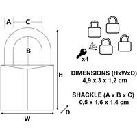 Intitulé du produit | Cadenas à clé en laiton massif 130EUR, Longueur: 28 mm, Nb de clés: 4, Anse Ø: 5 mm |