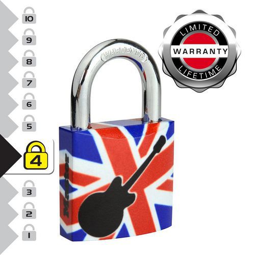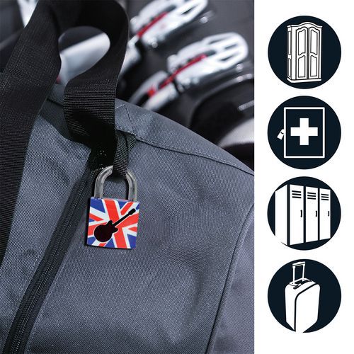 | Intitulé du produit | Cadenas à clé en métal imprimé drapeau 3430EUR, Longueur: 30 mm, Nb de clés: 2, Anse Ø: 5 mm |