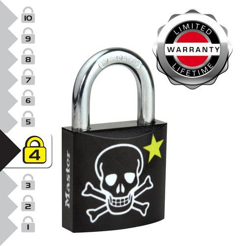 | Intitulé du produit | Cadenas à clé en métal imprimé tête de mort 3430EUR, Longueur: 30 mm, Nb de clés: 2, Anse Ø: 5 mm |