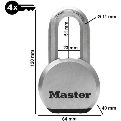 | Intitulé du produit | Cadenas à clé laminé Excell M930EURDLH, Longueurs: 56 mm, Nb de clés: 4, Anse Ø: 11 mm |