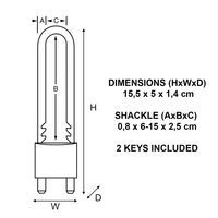 | Intitulé du produit | Cadenas à clés à anse ajustable 1950EURDCC, Anse Ø: 8 mm, Nb de goupilles: 5, Largeur: 50 mm |