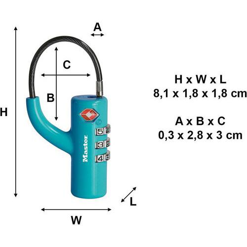| Intitulé du produit | Cadenas à code pour bagage 4717EUR, Anse Ø: 3 mm, Nb de molettes: 3, Longueur: 81 mm, Hauteur: 3.1 cm |