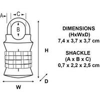 Intitulé du produit | Cadenas à combinaison 1535EUR, Anse Ø: 7 mm, Nb de molettes: 4, Longueur: 74 mm, Hauteur: 2.9 cm |