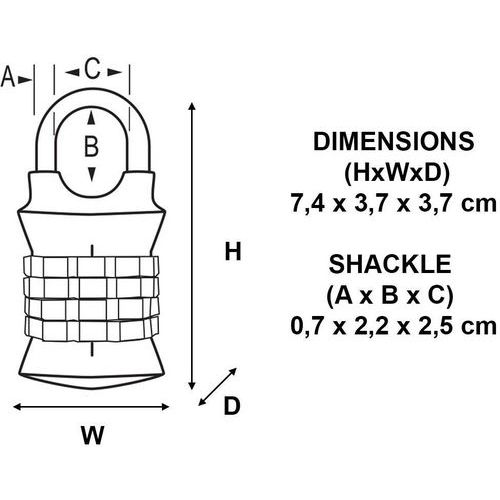 | Intitulé du produit | Cadenas à combinaison 1535EUR, Anse Ø: 7 mm, Nb de molettes: 4, Longueur: 74 mm, Hauteur: 2.9 cm |