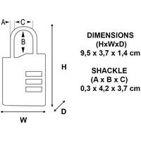 Intitulé du produit | Cadenas à combinaison acier-vinyle multicolor, Anse Ø: 3 mm, Nb de molettes: 3, Longueur: 95 mm |