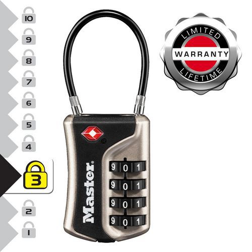 | Intitulé du produit | Cadenas à combinaison avec câble flexible 4697EUR, Anse Ø: 3 mm, Nb de molettes: 4, Longueur: 93 mm |