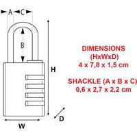 Intitulé du produit | Cadenas à combinaison en aluminium Program 7640, Anse Ø: 6 mm, Nb de molettes: 4, Longueur: 78 mm |