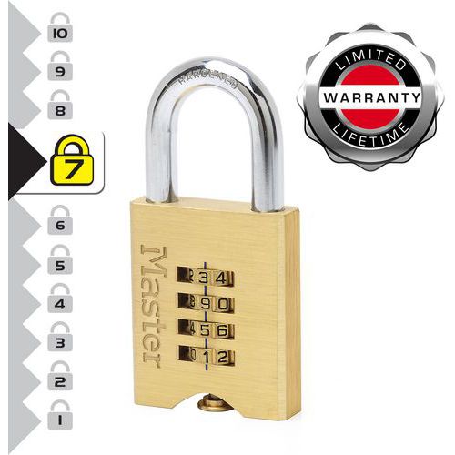 | Intitulé du produit | Cadenas à combinaison en laiton massif, Anse Ø: 10 mm, Nb de molettes: 4, Ouverture largeur: 50 mm |