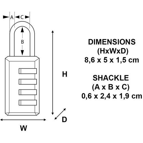 | Intitulé du produit | Cadenas à combinaison programmable assorti 653EURD, Anse Ø: 6 mm, Nb de molettes: 4, Longueur: 86 mm |