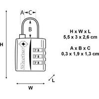 Intitulé du produit | Cadenas à combinaison simili-cuir 4692EUR, Anse Ø: 3 mm, Nb de molettes: 3, Longueur: 59 mm, Hauteur: 2.2 cm |